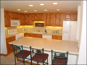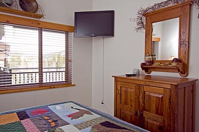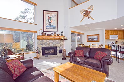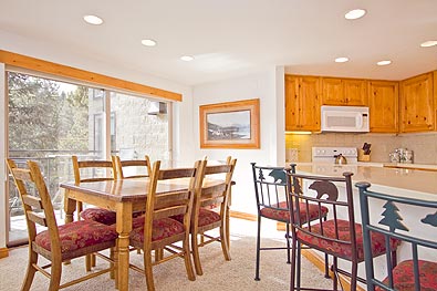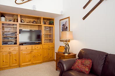 Powder Horn 404C is a 2 bdrm/3 bath + loft 1540 sf ski-in condominium located on the 4th floor of the Powderhorn "C" building. The Powderhorn condos are just steps across the stream from the high-speed 6-passenger Quicksilver lift at the base of Peak 9. In addition, it is only 3 blocks to Main Street and on the free shuttle routes for your convenience. This remodeled fourth floor Breckenridge condo offers a vaulted interior with plenty of natural light and a peaceful wooded view from both decks. Take a look at the interior pictures and see for yourself the beautiful decor and furnishings. Some of the new items include a rock fireplace, new carpet, tile flooring, new baseboards and furniture. Guests enjoy the quiet location, forested view and complimentary high-speed internet. This spacious Breckenridge condo also offers guests access to the Columbine pool and hot tubs just across the street.