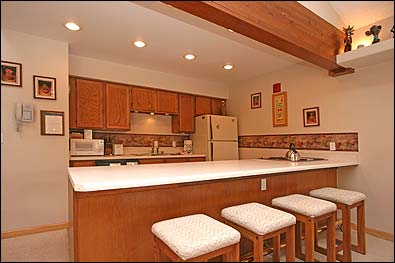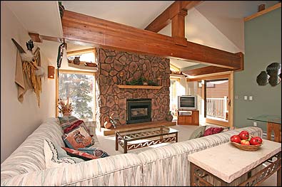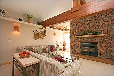 floor of the Sawmill Creek building. This complex has a central elevator. This living area provides vaulted ceilings, a gas fireplace and plenty of light. This unit is fully equipped with kitchen supplies, a fireplace, washer and dryer as well as free Wi-Fi. The complex itself offers a covered parking space, two indoor hot tubs, and a shared grill on the patio area. The kitchen is well-equipped if you want to eat in, but there are restaurants and bars in all price ranges within a short walking distance.