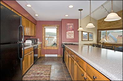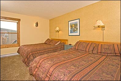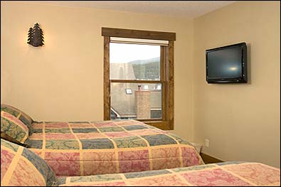 2 bdrm/2 bath 1180 sf ski-in unit condominium located on the fourth floor. This top floor, corner unit was extensivley remodeled in summer 2008, and has an unusually spacious floorplan with contemporary furnishings. Guests really enjoy the flat screen TVs in the living area, master and second bedrooms. The vaulted living area also features a new rock fireplace with new carpeting. Guests also appreciate the covered parking, 2 indoor hot tubs and the close proximity to the attractions of downtown. Wireless high-speed internet access recently added!