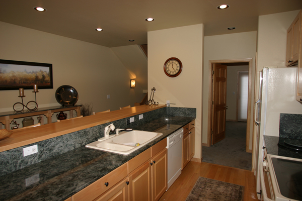 The main level contains the main living area, which is set up with a state of the art sound system, a cozy gas fireplace, and TV with DVD player for watching the game or having a movie night! This level also has the fully stocked and remodeled kitchen and dining room for a quick breakfast before hitting the slopes or even a full size Holiday meal! The private hot tub and deck are just off of the living room so you can soothe achy muscles before your next day on the slopes!
