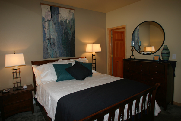 The first bedroom is on the main level and is furnished with a Queen aspen bed, another TV, and a private bathroom with a combination shower and tub.