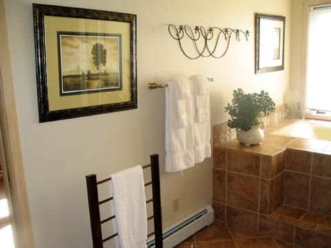 apres ski rendezvous. There is a steam shower to relax and his and her sinks for morning preparations. Open the view window and you will get a picturesque view of the mountains and the warmth of the afternoon sun.